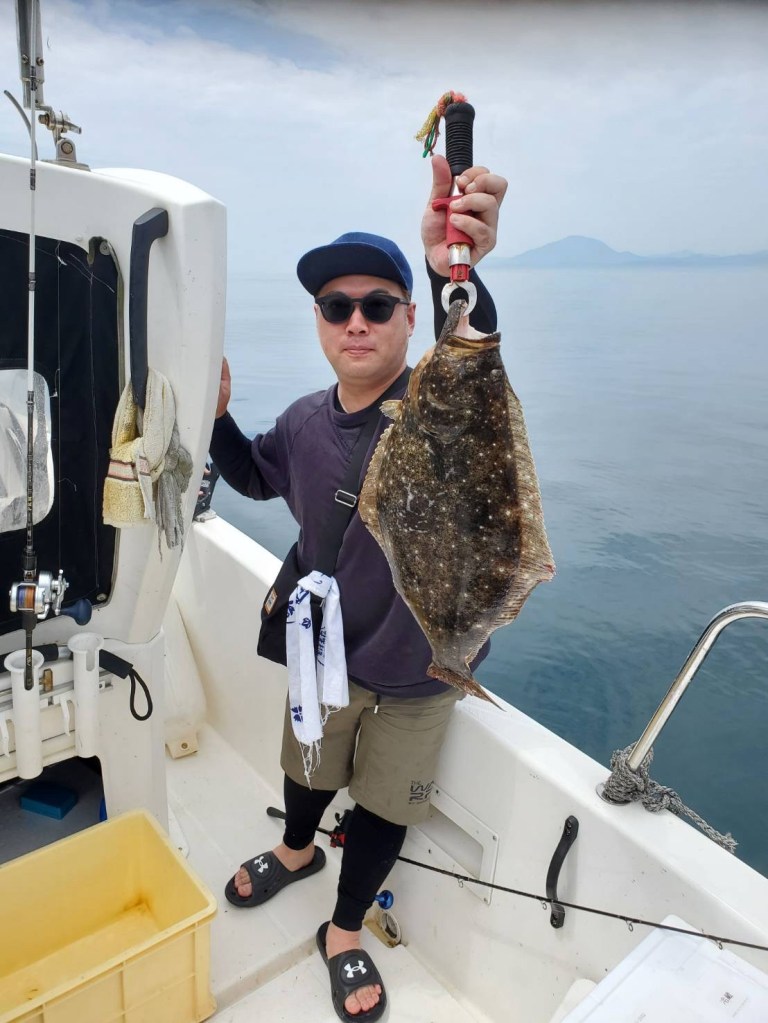 函館港から15分程沖へ出たところでヒラメ狙いで出港!3時間位の釣りでしたが皆さんゲットできました!