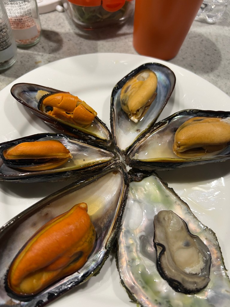 白ワインとの相性が良い!大ぶりで濃厚すぎてパンチ効いてました!カキは殻の割に小さすぎ栄養が悪いのか?大きさは、どうでも良いですが船で食べる時間が最高です!誰か遊びに来て下さい・・・代行車はよべますので ^_^
